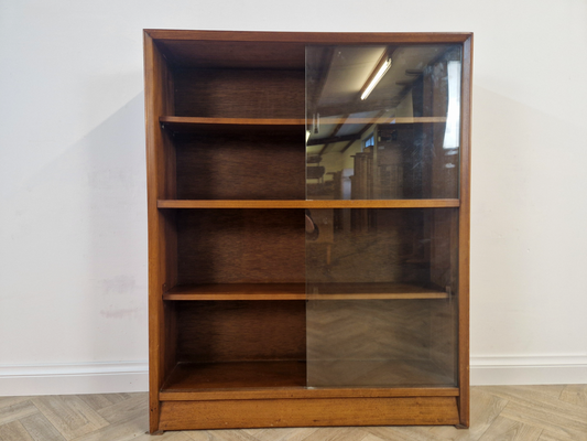 Herbert Gibbs Gold Signature Vintage Mid Century Medium Teak & Glazed Glass Bookcase