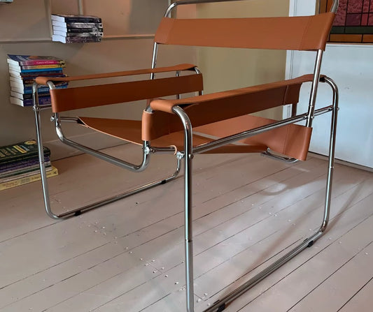 Mid Century Modern Bauhaus Nordic Design Leather & Steel Lounge Chair