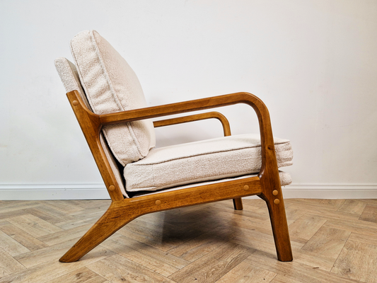 Mid Century Modern Solid Beech & Fabric Danish Design Lounge Accent Armchair