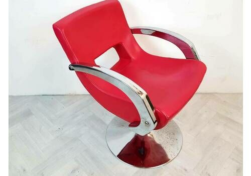 Vintage Mid Century Art Deco Style Cherry Red Leather & Chrome Barbers Lounge Accent Chair