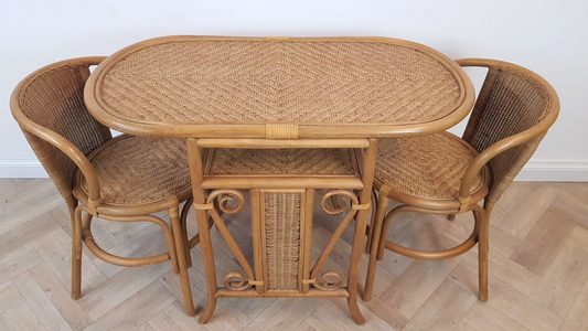 Vintage Mid Century Wicker & Cane Compact Table and Chair Dining Set