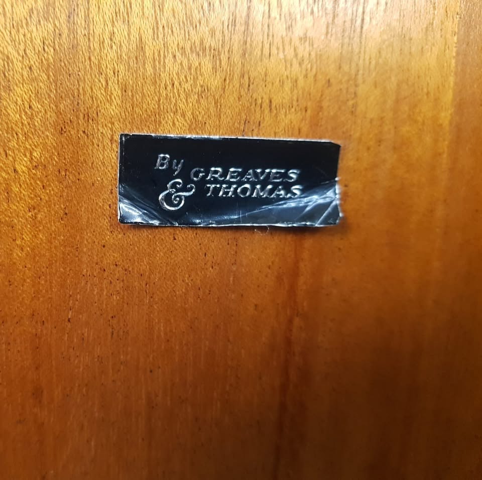 This stunning Greaves & Thomas mid-century sideboard from the 1960s showcases impeccable British craftsmanship and timeless design. Crafted with sleek lines and minimalist detailing, it features spacious cupboards and smooth drawers for elegant storage. Minor internal damage to two doors has been professionally repaired, ensuring both beauty and functionality.